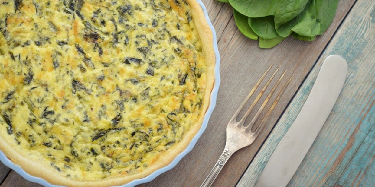 Dans la croûte à tarte, étaler d’abord les épinards, puis le fromage et ensuite l’oignon en formant ainsi plusieurs couches. Versez ensuite le mélange d’oeufs sur les ingrédients.